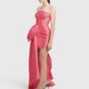 Make a grand entrance in the Barbie Dress. This strapless mini combines a romantic, figure-hugging fit with a bold, oversized bow that sweeps dramatically over the leg. High-impact color meets 100% pure silk for the ultimate statement look Flattering, body-hugging fit with romantic detailing. Fabric: 100% Silk (non-stretch). Closure: Hidden back zipper.