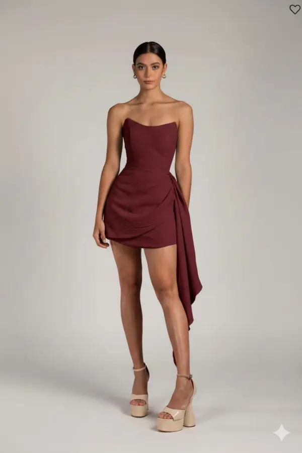 El “Carrie Dress in Terracota” es una pieza atemporal, que cuenta con una silueta body con mini, un escote romántico en curva y un detalle drapeado de lado. Su cierre se encuentra en la parte trasera.
