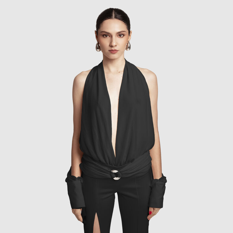 Delicado y femenino, el Tourmaline Top está hecho en gasa ligera con un diseño fluido, mangas largas abiertas y una espalda descubierta de ensueño. Se ajusta con un lazo en la parte baja de la espalda y botones en el cuello para un acabado elegante y sofisticado.
